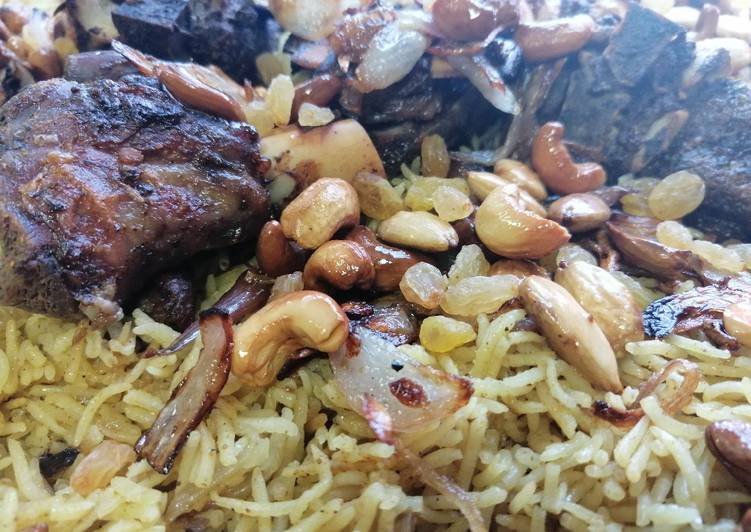 - وبسكبه بصحن التقديم وبنحط عليهم حبتين بصل مقليات ولوز وكاجو.